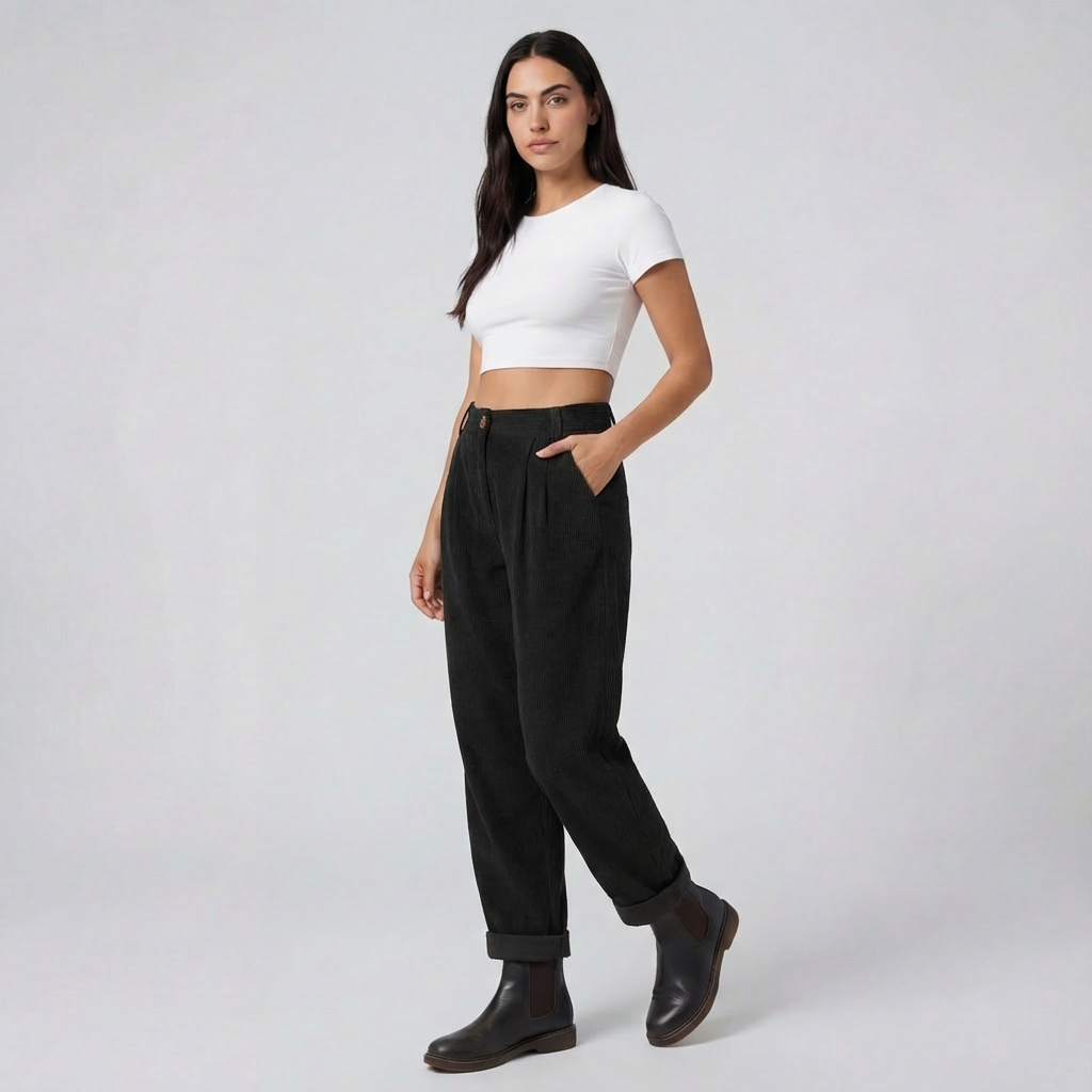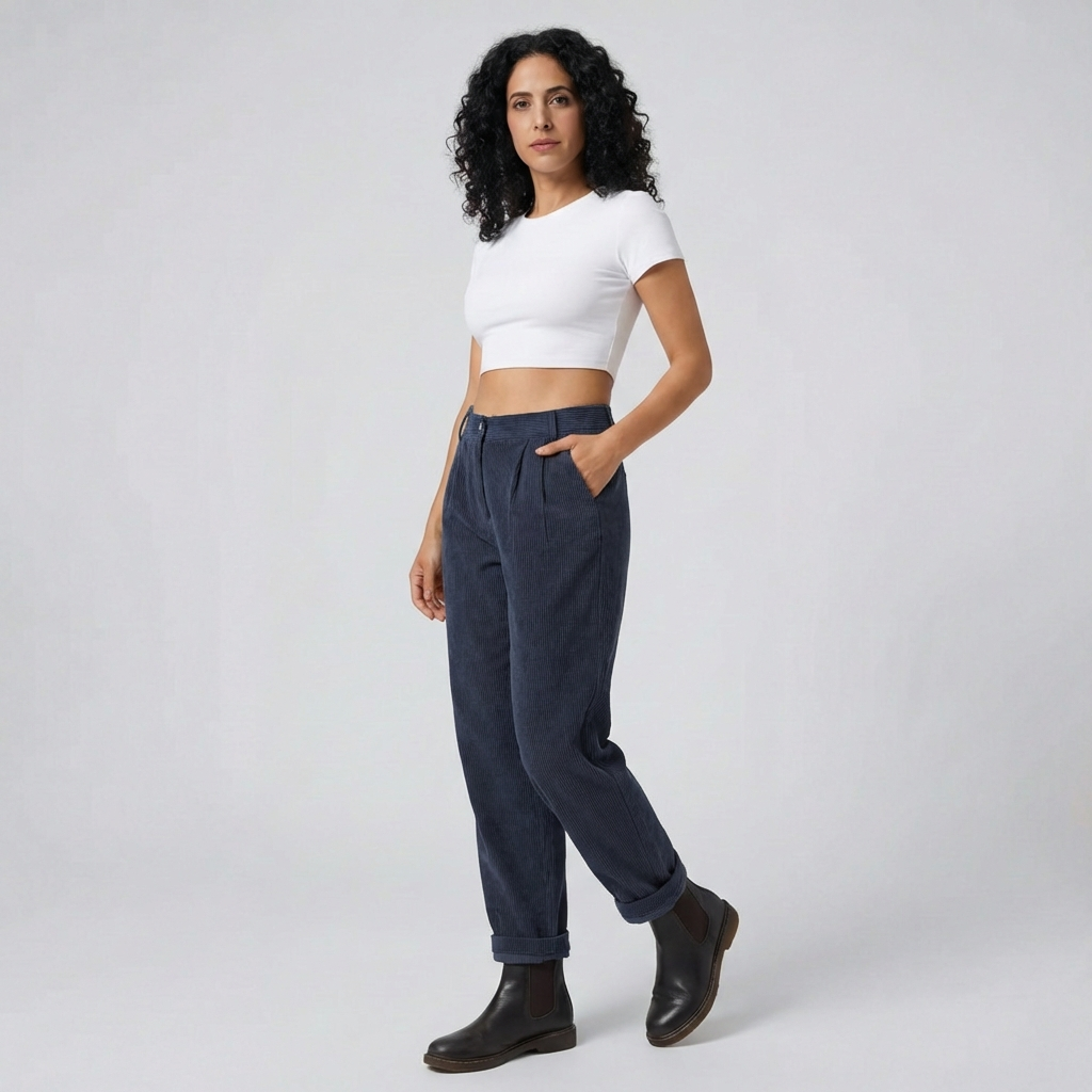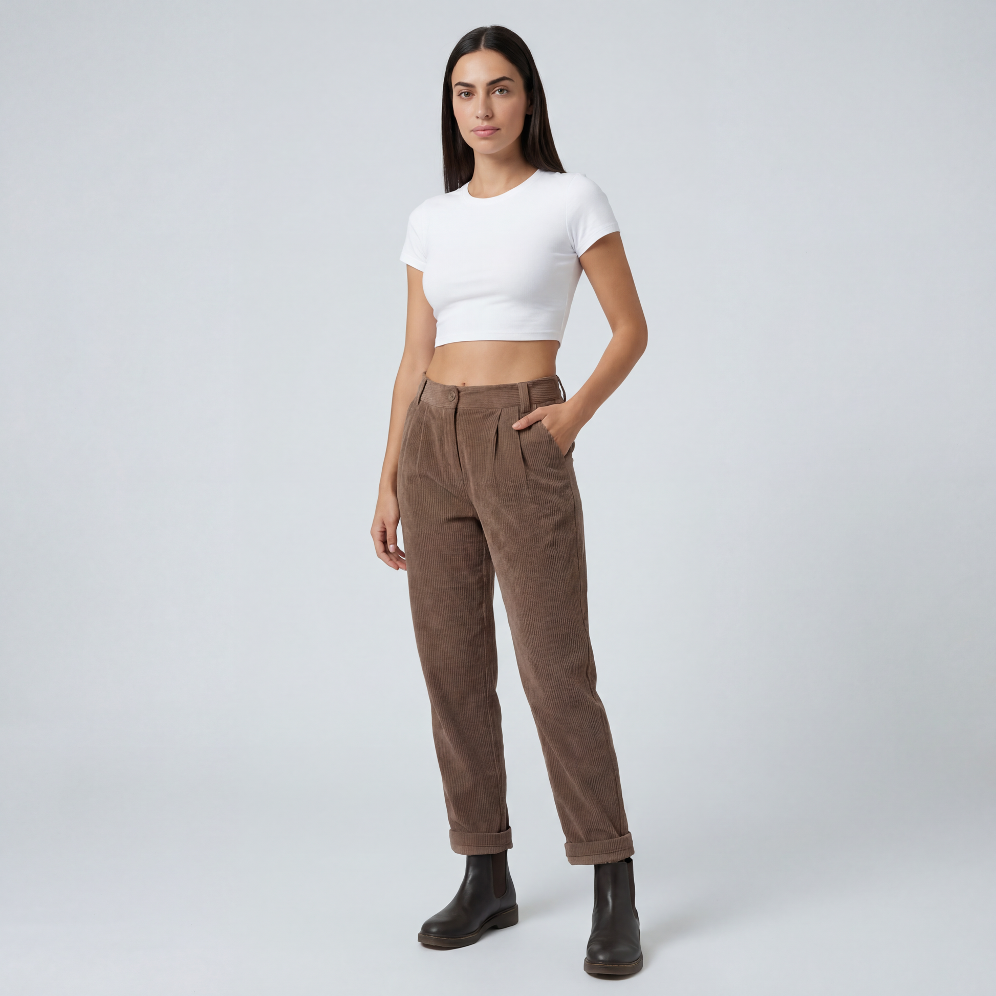 מכנס קורדרוי נוח ואלגנטי עם מותן בינונית